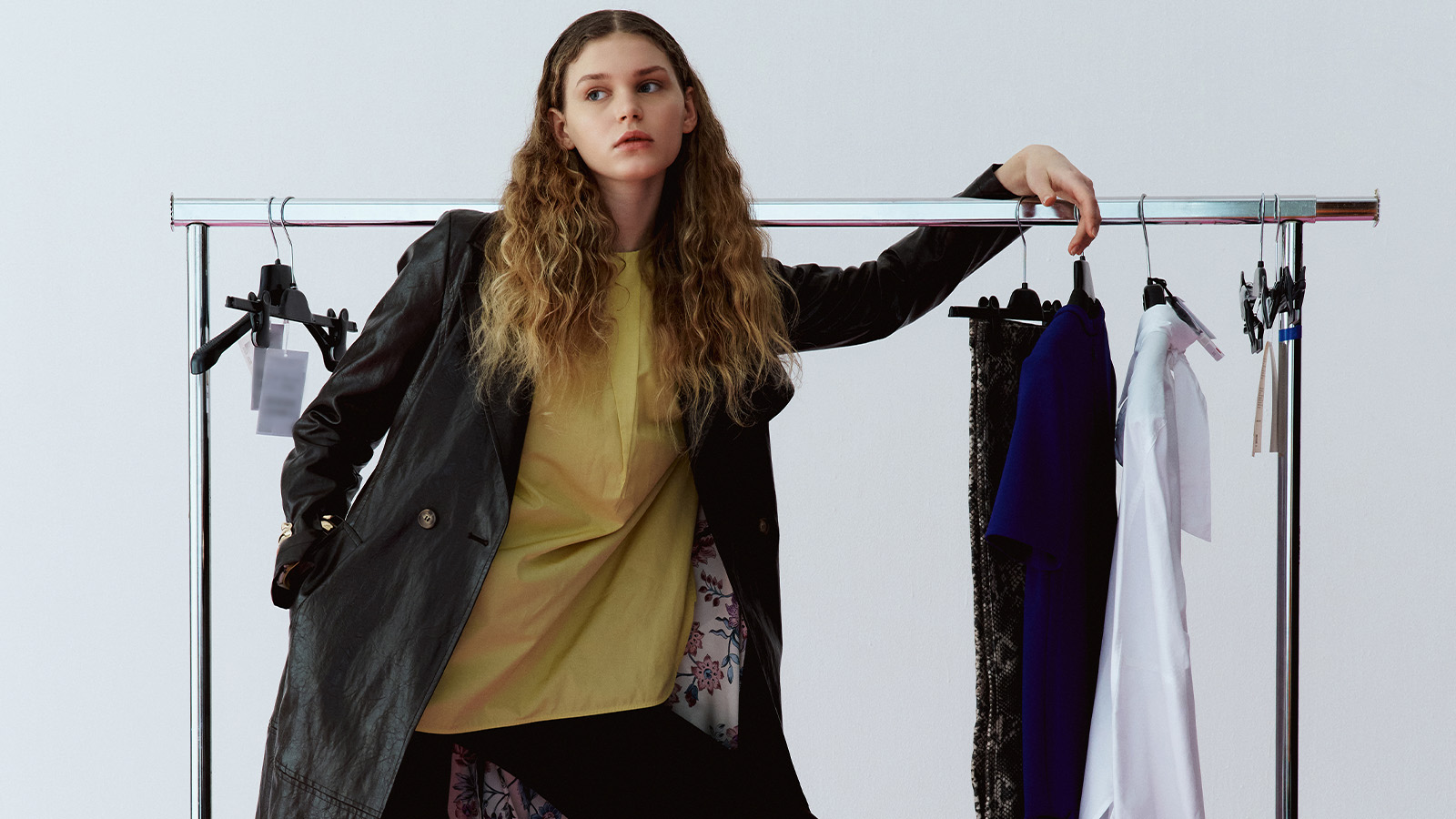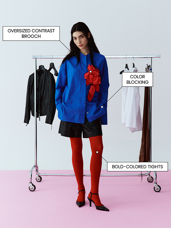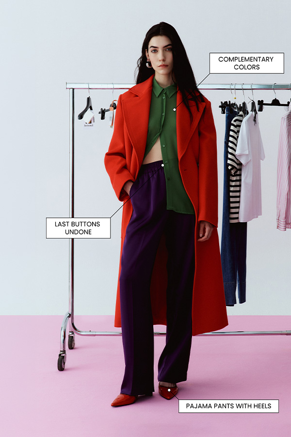 Complete the outfit with a classic navy or micro-check peacoat. Loafers are updated in contrasting black and white: where elegance blends tradition and trend.