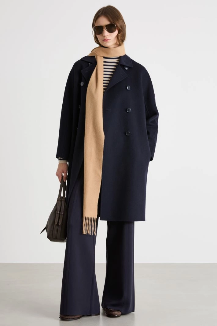 Straight-fit, double-breasted midi coat in a double-faced wool-blend cloth, with a shirt collar, in-seam pockets, a centre-back vent and a matching belt. Button fastening.