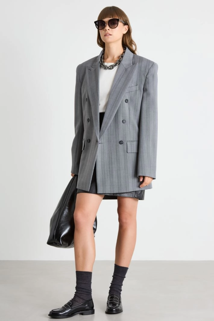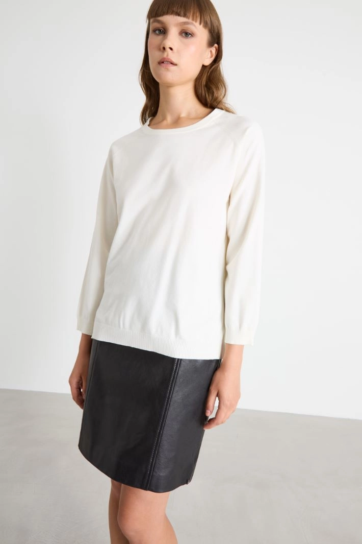 Straight-cut sweater in viscose blend yarn, featuring a crew neck, long raglan sleeves and an asymmetrical hem with side slits.