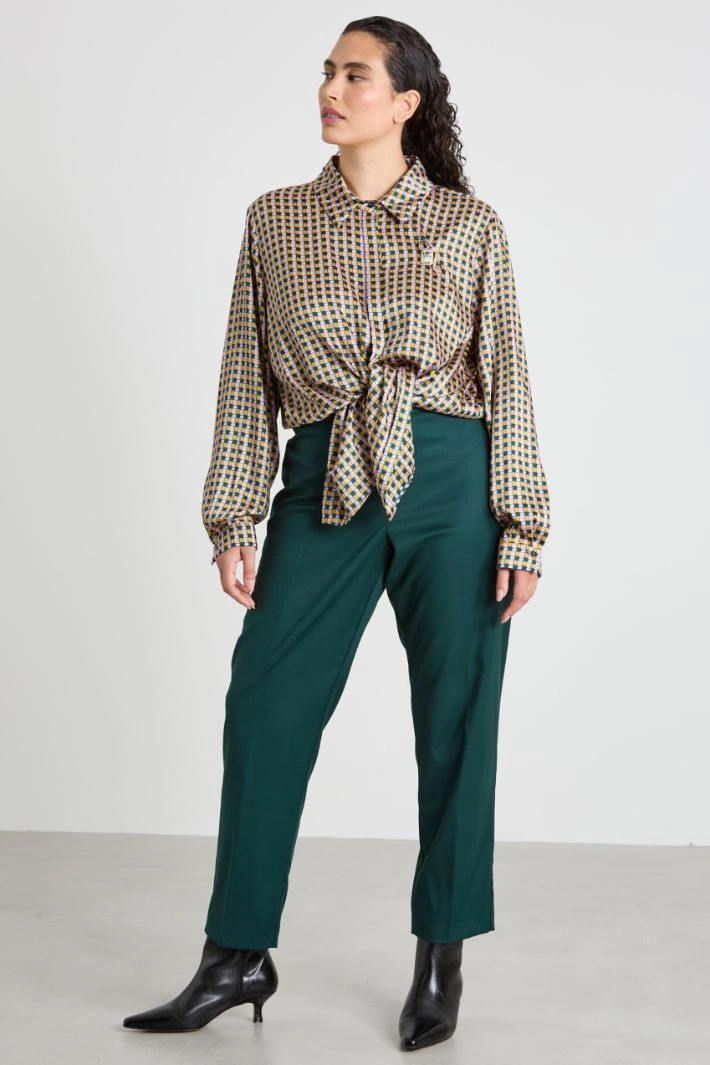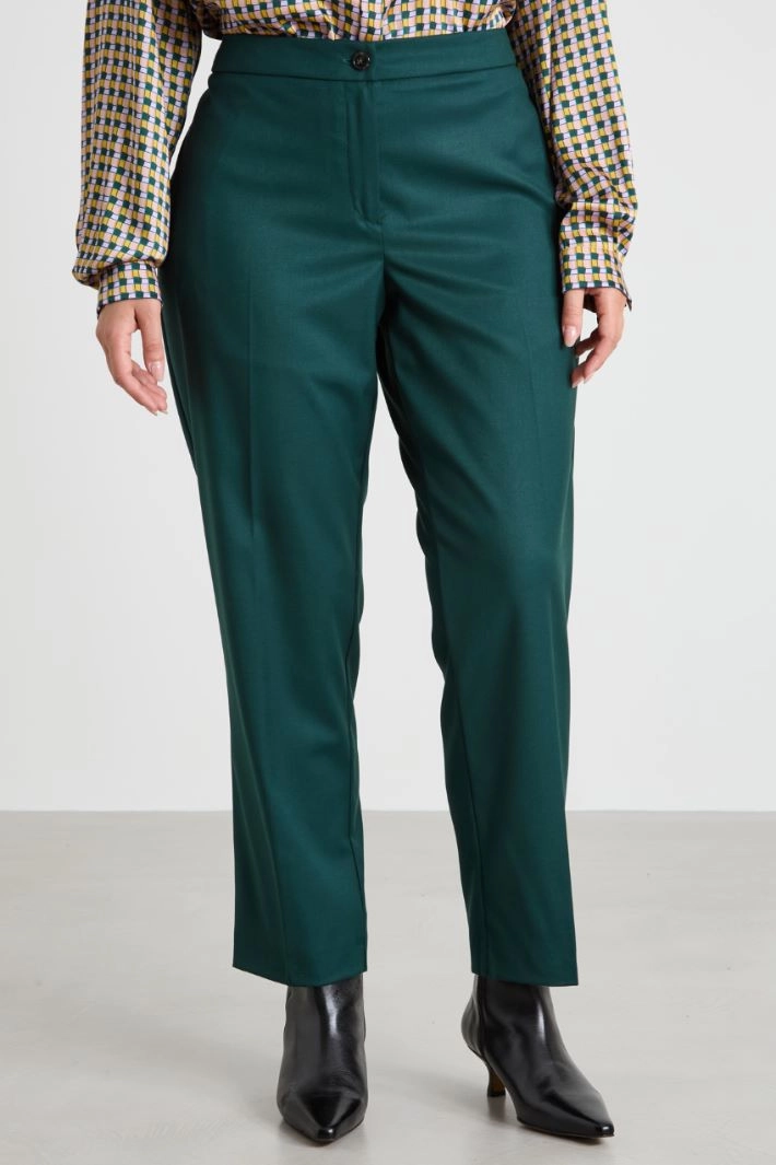 Cigarette trousers in stretch viscose blend twill, with elastic waistband insert on the back and pressed crease lengthwise. Zip and button fastening.
