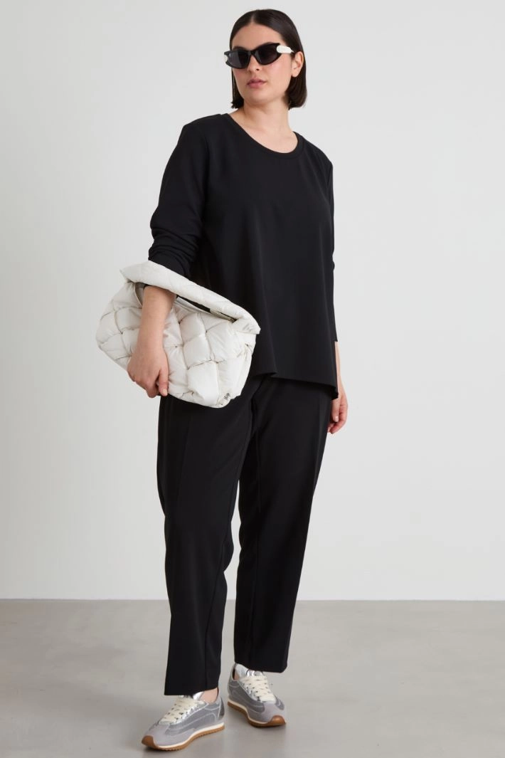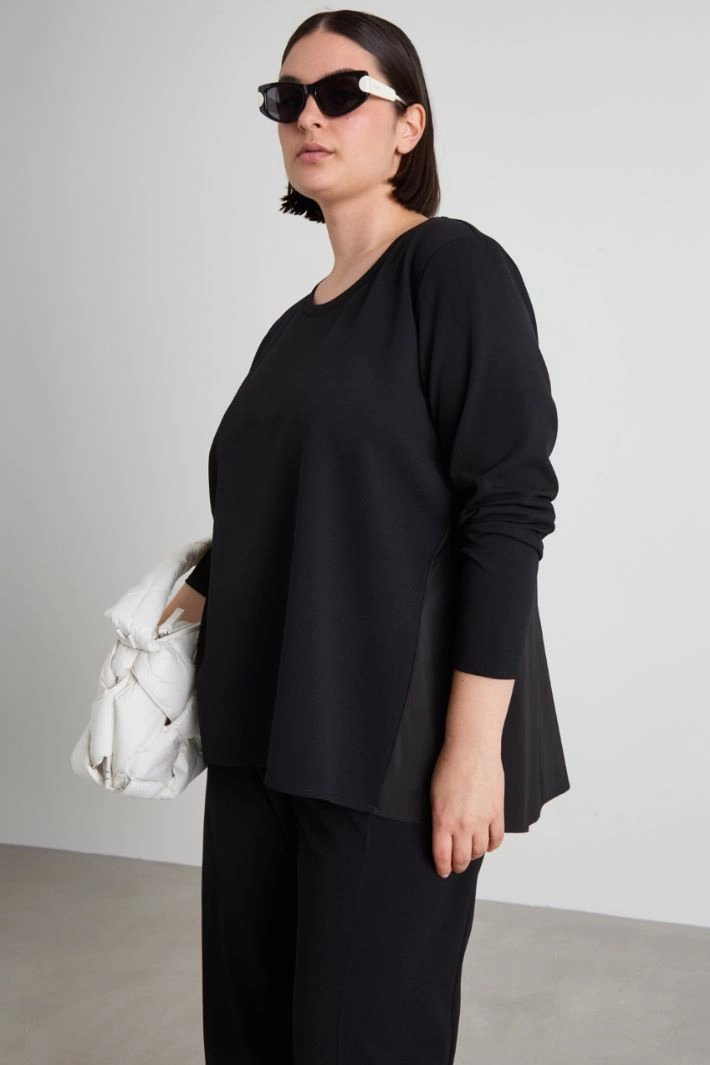 Regular-fit sweatshirt in technical fabric and taffeta, with crew neck, long sleeves and flounce on the back.