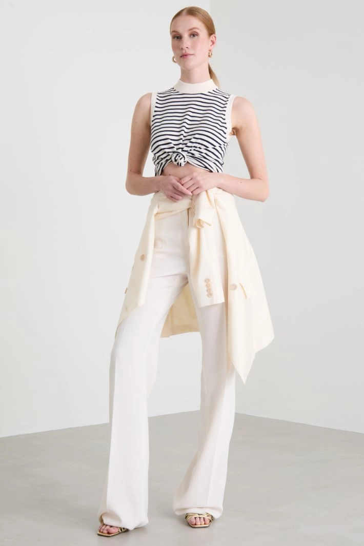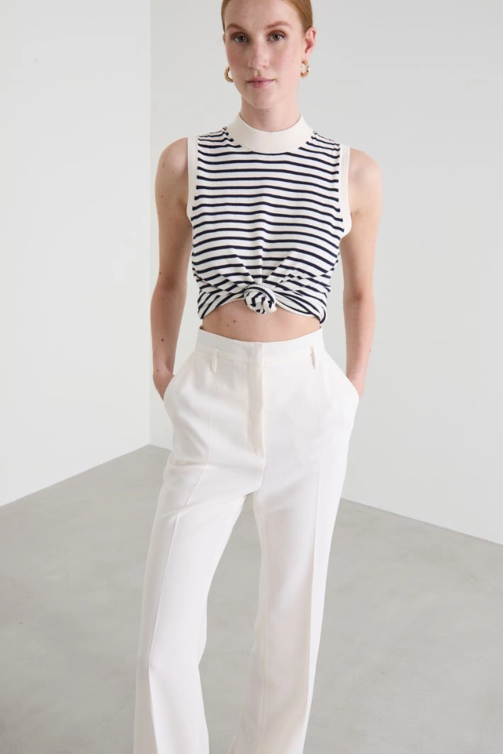 Regular-fit top in viscose blend knit, with a high neck, sleeveless and ribbed trim.