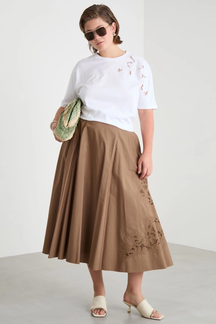 Embroidered poplin skirt